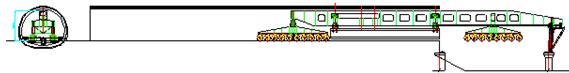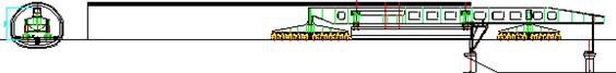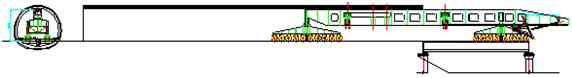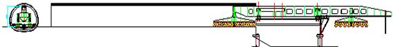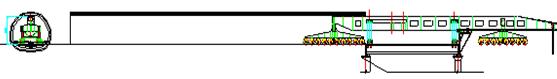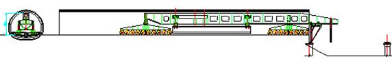 ① 打开主支腿定扭矩马达,当反馈信息表明马达工作正常时,启动后车,以每分钟不超过2.5米的速度前行过孔。同时观察主支腿水平力监测显示是否正常(此时上钢销显示数据大致在80kN左右,对钢销受力数值的控制是:上钢销150kN报警,170kN断电;下钢销570kN报警,650kN断电),如发现主支腿水平力数值异常,须检查故障原因,排除后方可继续过孔作业。当辅助支腿已上到前方桥墩时,以慢速使辅助支腿就位。